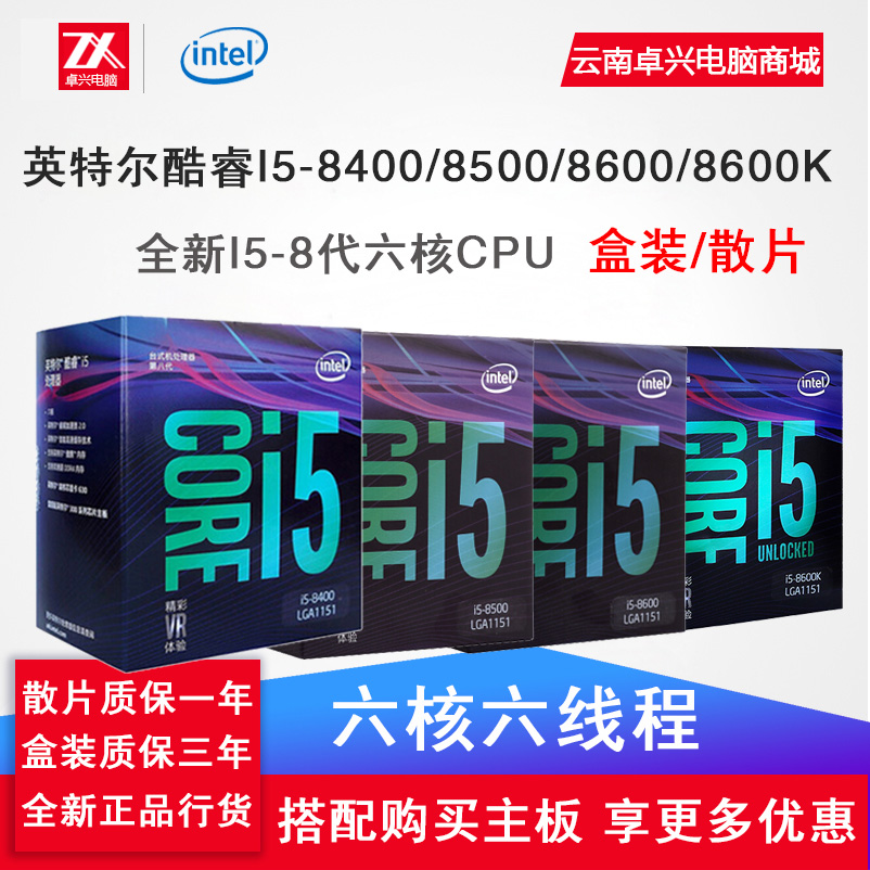 Intel/英特尔 I5-8600k 8代I5六核CPU散片/盒装 昆明电脑批发