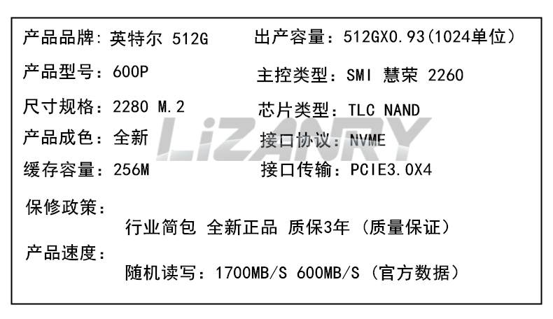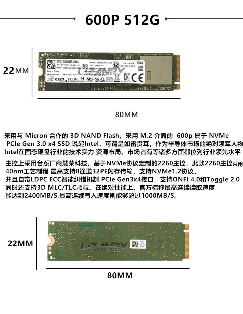 云南电脑批发 Intel/英特尔 600P 512G SSD台式机电脑M.2接口固态硬盘