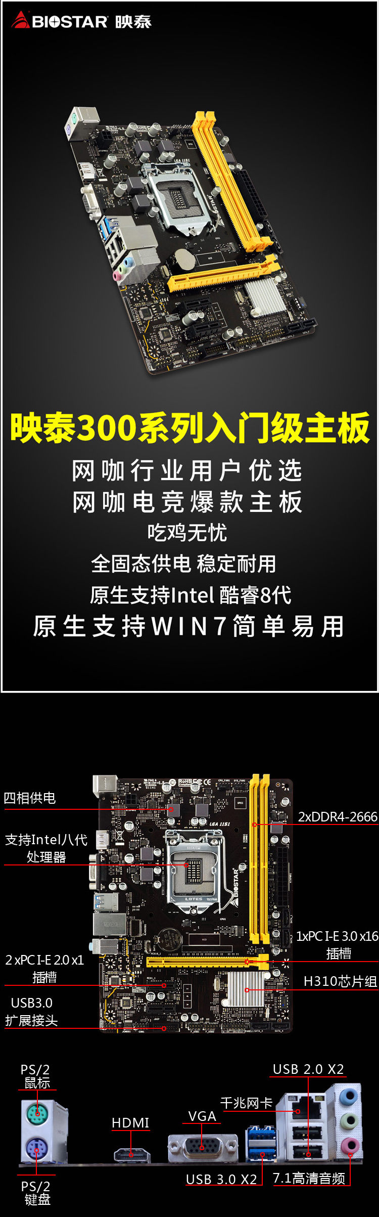 云南主板批发 映泰主板H310MHC2 板载HDIN+VGA接口