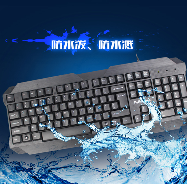 3、键盘底部设有超大导水孔,可以迅速排出撒入键盘内的液体。超大导水孔,利用大量导水孔的高通透性,在水尚未流至键盘里层之前,就被全部排出。