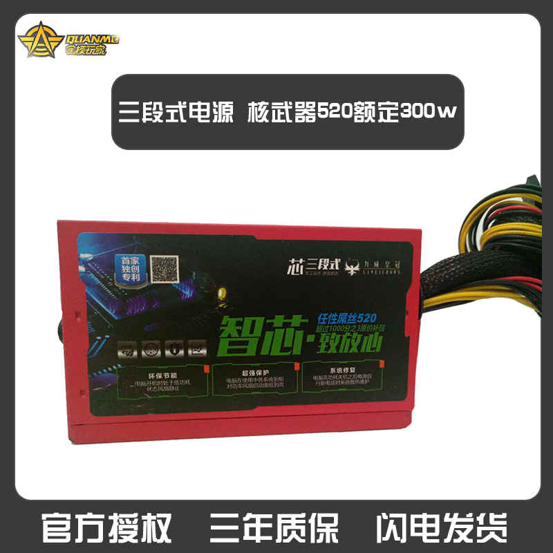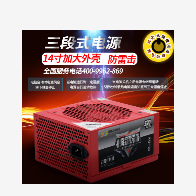 三段式电源 核武器520 14寸大风扇 额定300W 防雷击
