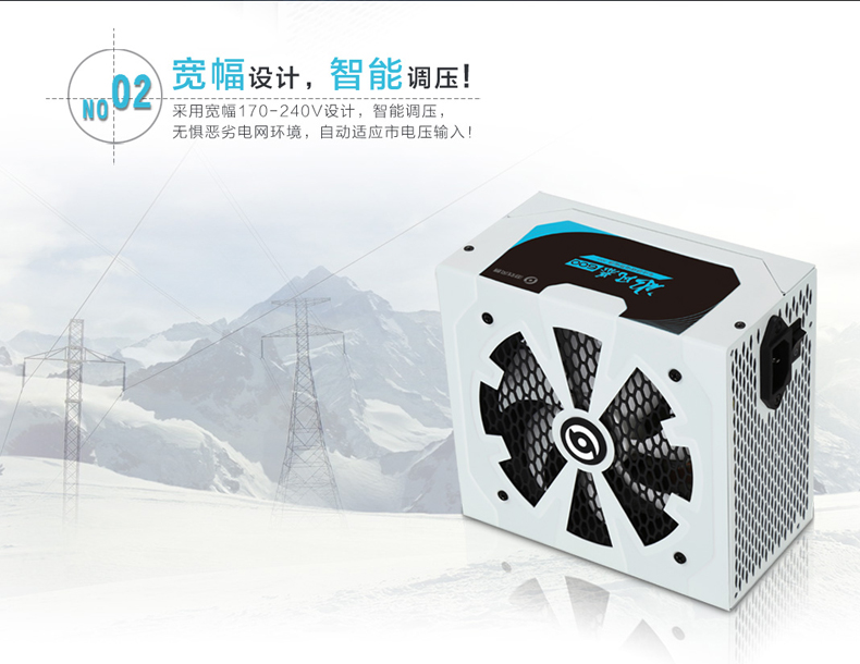 70V-240V宽幅设计,12CM静音风扇配合智能温控电路,散热又静音