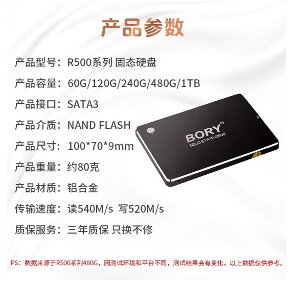 BORY博睿 120G SSD 固态硬盘 SATA3.0接口 R500系列 电脑升级高速读写版 云南电脑批发