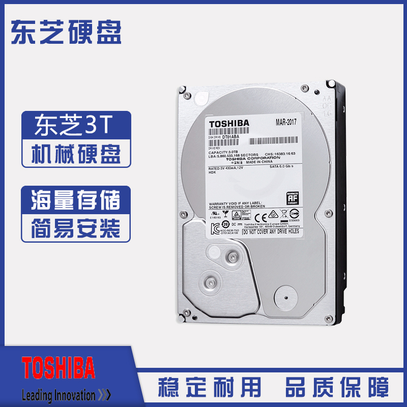 东芝(TOSHIBA) 3TB 32MB 5940RPM 监控硬盘 SATA接口 影音串流系列 (DT01ABA300V) 监视应用优化