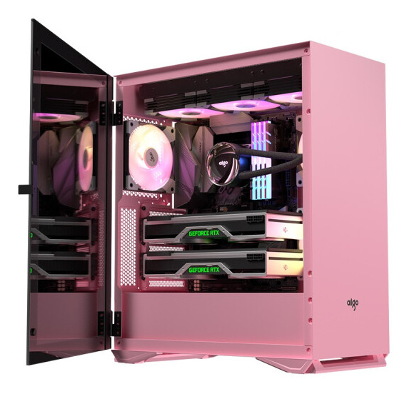 aigo爱国者YOGO M2 PRO 猫爪粉 游戏鞋盒电脑机箱 E-ATX/ATX主板/360冷排/侧拉式钢化玻璃/可竖装显