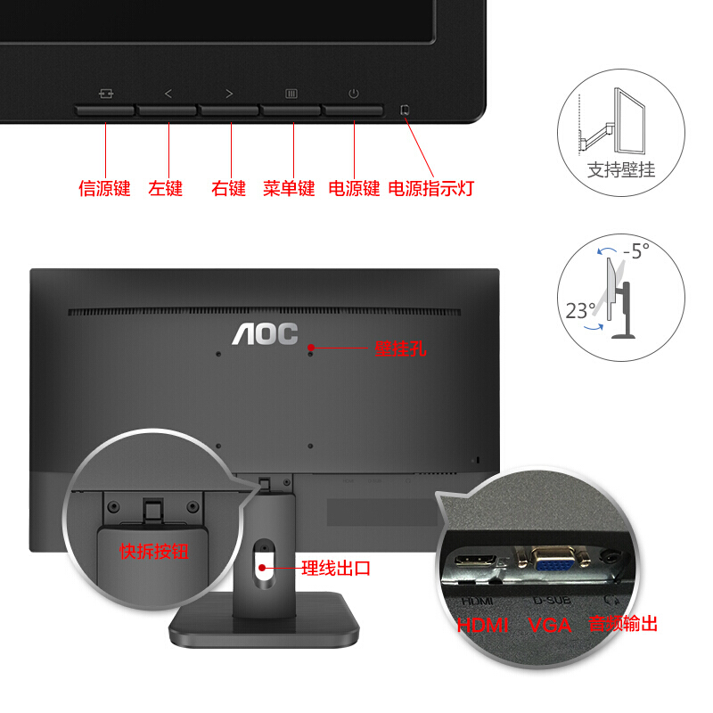 27IPS技术广视角炫彩硬屏,快拆支架;5ms,250nits,VGA*1、HDMI1.4*1、音频输出,对比度1000:1(静态)2000万:1(动态),1920*1080不闪屏,低蓝光设置;支持i-Menu调节软件;支持e-Saver管理软件,智能关机;支持VESA壁挂;认证:节能/环境标志/TUV低蓝光。