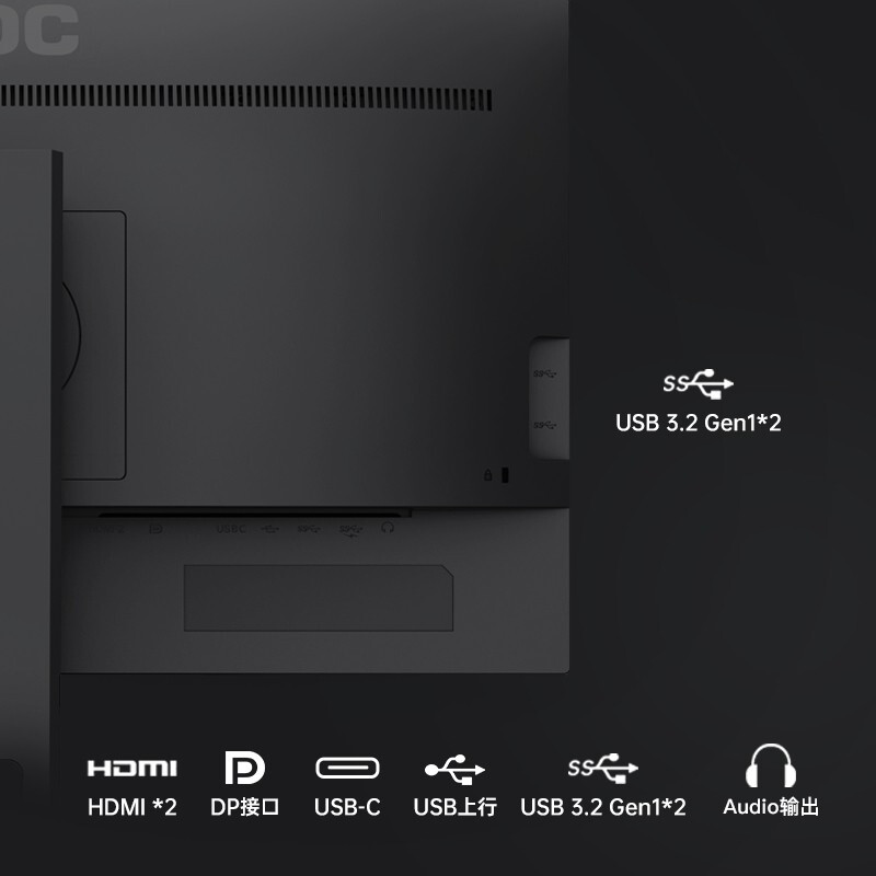 (65W),音频输出,USB上行接口,USB3.1Gen13(蓝色接口)、USB3.1Gen1快速充电接口1(黄色接口),Type-C接口;对比度3000:1(静态),8000万:1(动态),2560x1440QHD分辨率,75HZ,色彩精准度E<2(平均值);不闪屏,低蓝光设置;支持i-Menu调节软件;支持e-Saver管理软件,智能关机;支持VESA壁挂;HDCP功能,HDRMode设置,ECO阅读模式,AdaptiveSync,FPS/RTS等游戏模式;有边框;