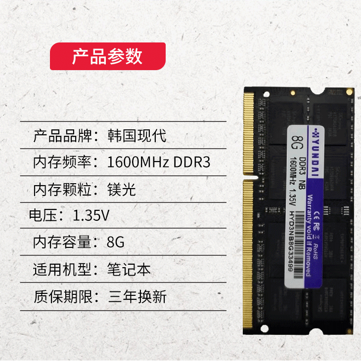 韩国现代 8G 1600 DDR3 笔记本内存条