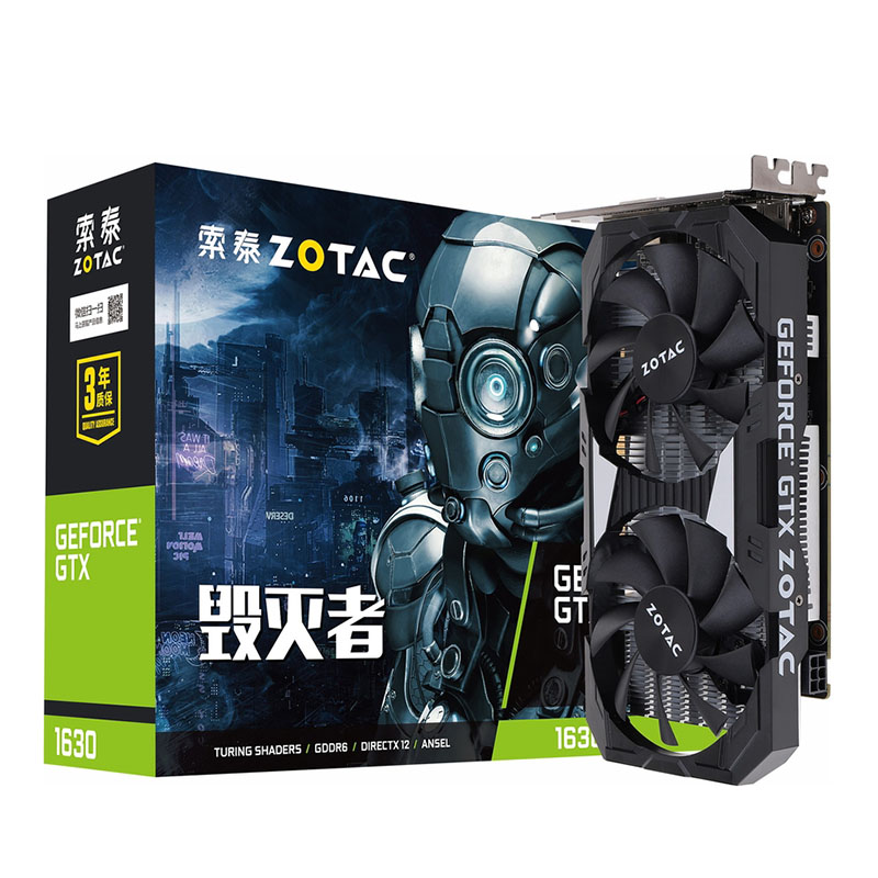 索泰(ZOTAC) GTX1630-4GD6 毁灭者 台式机电竞游戏独立显卡