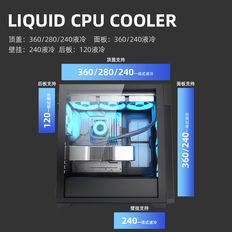 爱国者(aigo)YOGO M8 PRO黑色 玻璃侧透台式机电脑主机箱(E-ATX主板/双360水冷位/9风扇位/40系显卡)