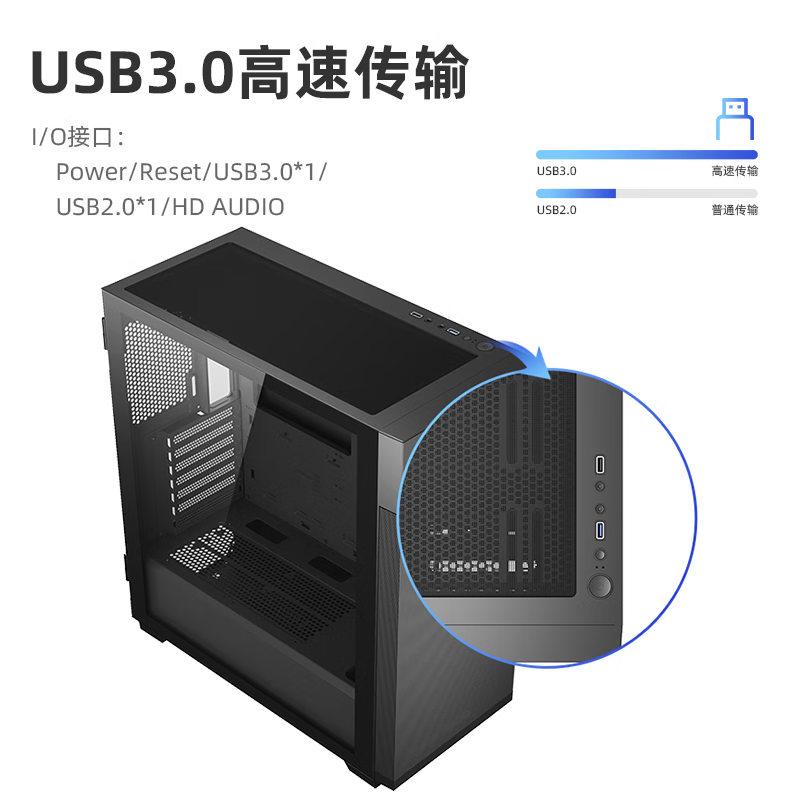 爱国者 暗影 亚克力侧透版电脑机箱 黑色
