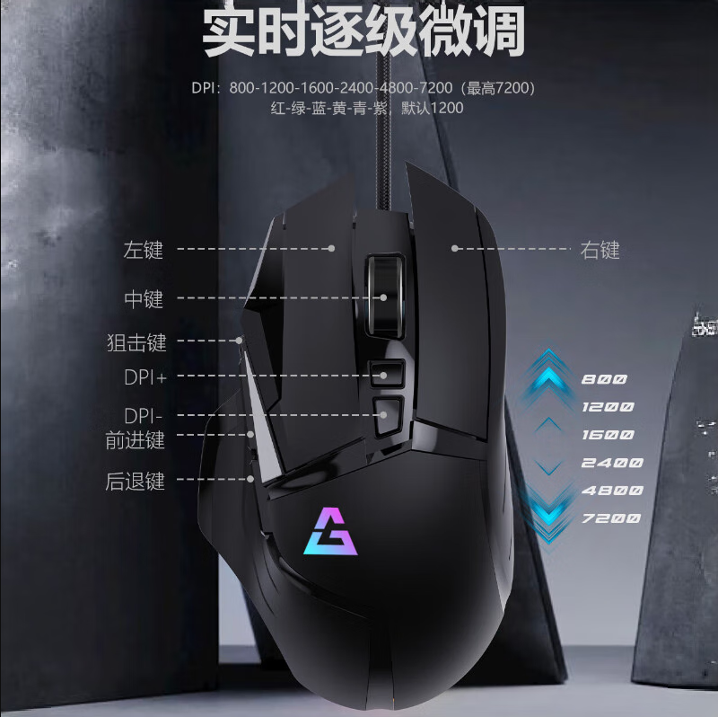 爱国心 GM903 8DRGB幻彩 黑色 电竞游戏鼠标有线鼠标7200dpi