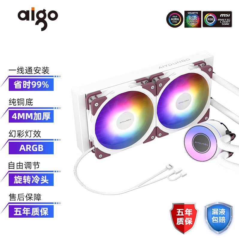 爱国者(aigo)冰魄CP Performance 240白色 1600W色5V幻彩ARGB版 一体式CPU水冷散热器