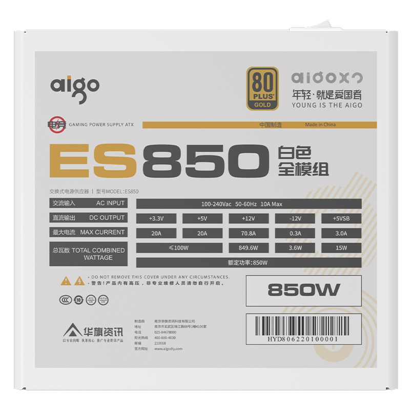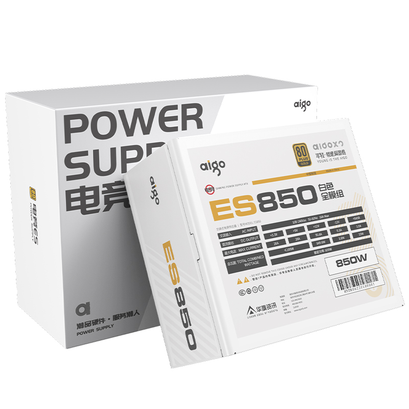爱国者(aigo)ES850 电竞金牌全模组电脑台式机电源 ATX2.0 智能温控 台系主电容 ES850/白/850W