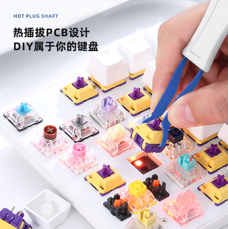 爱国心 GK87 皎月轴 蓝透 有线无线三模2.4G蓝牙机械键盘热插拔轴体 RGB幻彩灯光客制化机械键盘87键PBT键帽