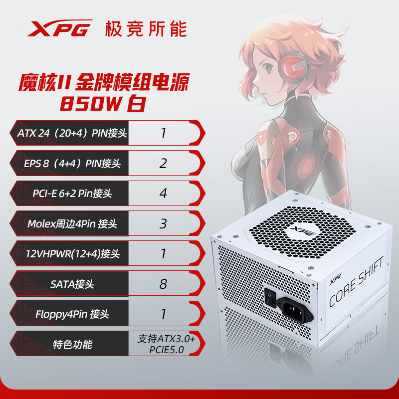 威刚(ADATA)XPG魔核II 850W 白【ATX3.0】电源金牌全模组全日系电容台式电脑主机游戏电竞白金效能智能温控