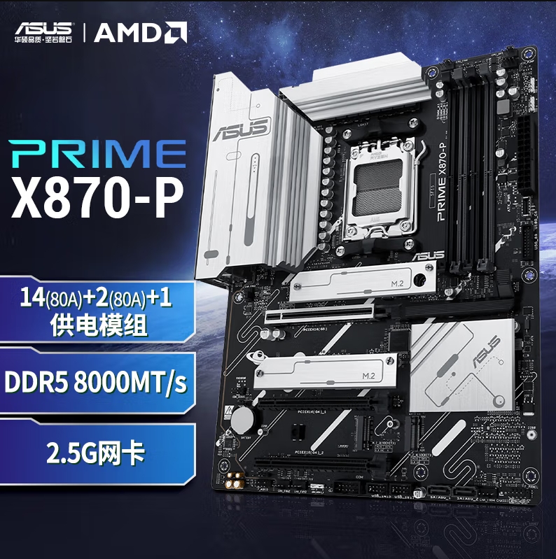 华硕PRIME X870-P主板 支持 CPU 9900X/9950X (AMDX870/socket AM5)