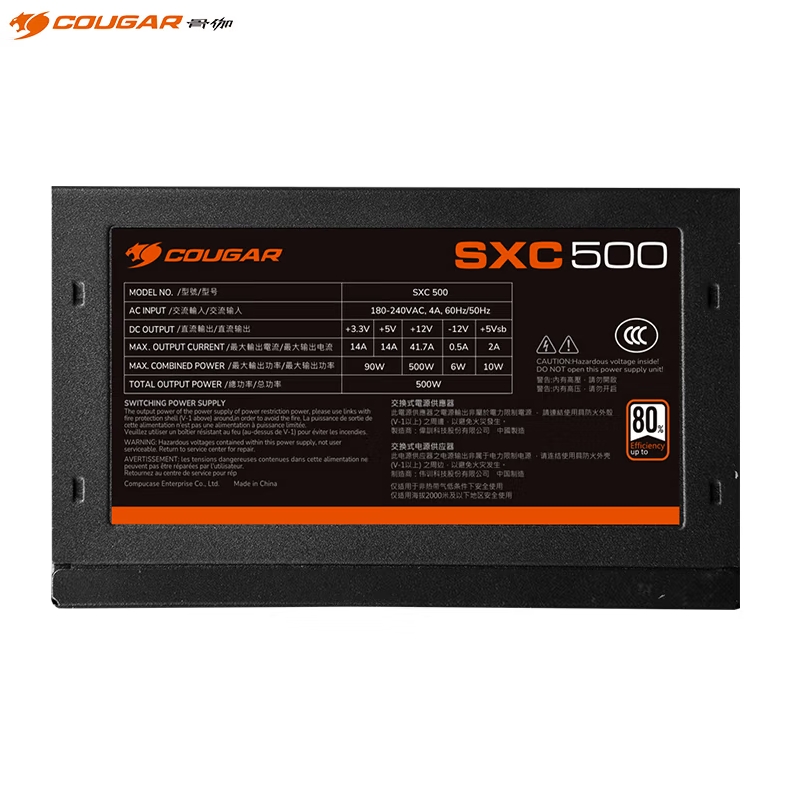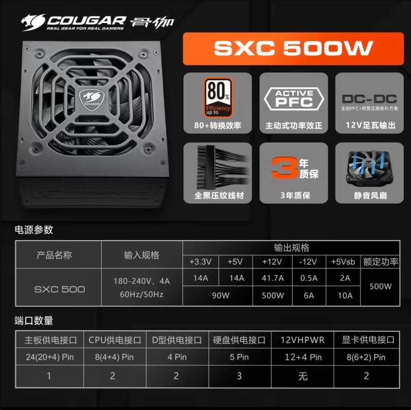 骨伽 SXC500黑色 额定500W 白牌直出 静音宽幅电脑主机电源