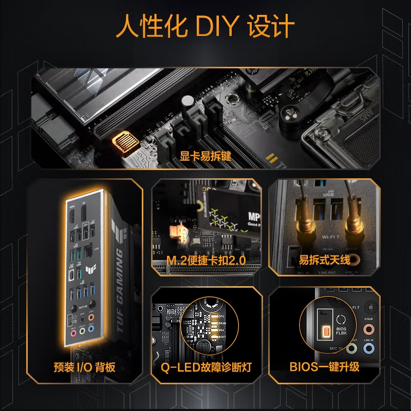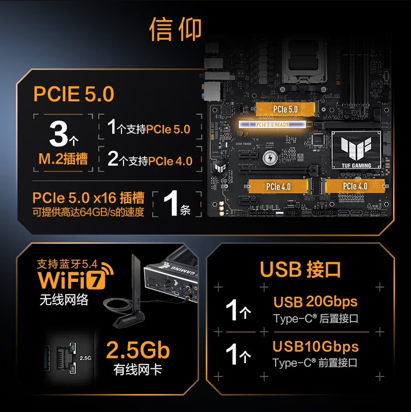 华硕TUF GAMING B850-PLUS WIFI主板 CPU 7800X3D/9800X3D/9600X(AM5)