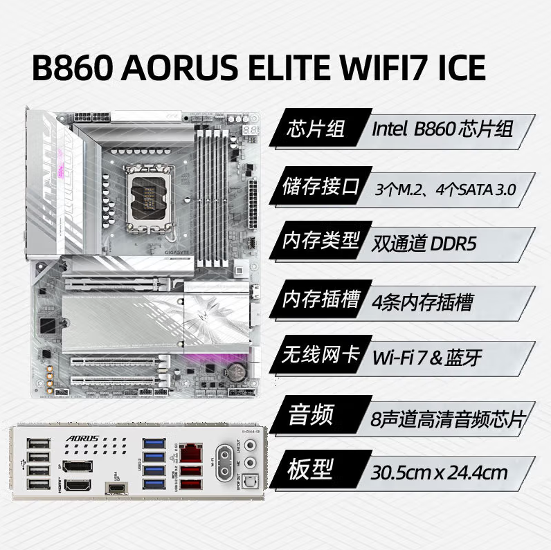 技嘉(GIGABYTE)冰雕B860 A ELITE WF7 ICE DDR5主板 支持CPU Ultra U7-265K