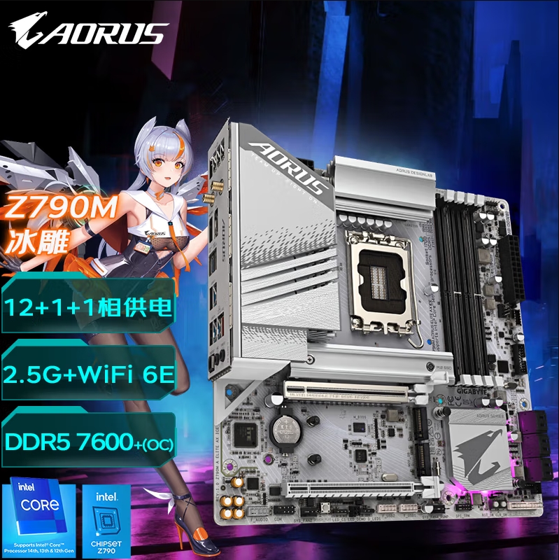 技嘉 Z790M A ELITE AX ICE 冰雕主板 支持CPU 14900K/13700K处理器
