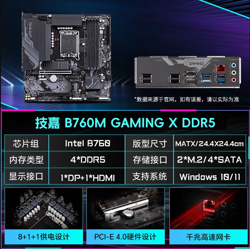 技嘉(GIGABYTE)魔鹰X B760M GAMING X DDR4 主板支持CPU 1390013700KF